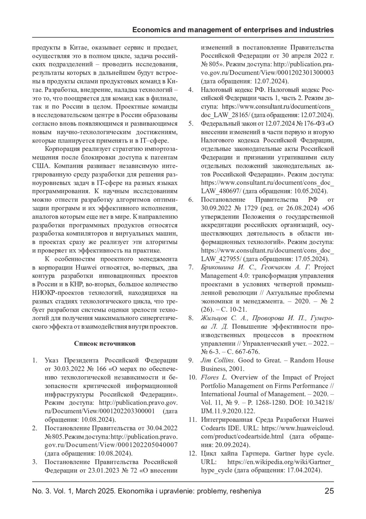 Актуализация совершенствования подходов к управлению IT-компаниями связана с государственной задачей по развитию высокотехнологических производств в структуре экономики РФ, а также с задачей по снижению оттока высококвалифицированных кадров за рубеж. IT-компании являются передовыми в области использования инноваций, в том числе касающихся процессов управления. В компаниях используется проектный подход, матричные структуры управления, разрабатываются ключевые показатели эффективности проектов, внедряют MBO-планирование. Одной из передовых компаний на рынке информационных технологий является корпорация Huawei, имеющая с своей структуре центр разработки и развития компетенций в г. Новосибирске. Корпорация не размещает акции на фондовом рынке, поэтому не возникает необходимости перенаправлять часть прибыли на выплату дивидендов, что расширяет возможности компании в области инвестиций в долгосрочные проекты. К особенностям проектного менеджмента в корпорации Huawei относятся, во-первых, два контура разработки инновационных проектов в России и в КНР, во-вторых, большое количество НИОКР-проектов технологий, находящихся на разных стадиях технологического цикла, что требует разработки системы оценки зрелости технологий для получения максимального синергетического эффекта от взаимодействия внутри проектов.