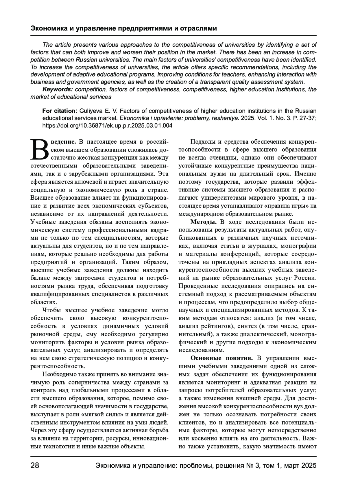 27. Тараненко Л. Н., Слукина С. А. Исследование факторов, влияющих на конкурентоспособность высших учебных заведений // XVII международная конференция “Российские регионы в фокусе перемен”: сборник докладов (Екатеринбург, 17-19 ноября 2022 г.). - Екатеринбург: ООО Издательский Дом “Ажур”, 2023. - С. 357-361. EDN: OJDDNS