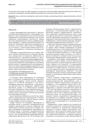 2. Гавриленко А.А., Горбачева Е.В. К вопросу о дифференциации процессуальной формы как основе специализации уголовного судопроизводства по делам несовершеннолетних // Сибирский юридический вестник. 2014. № 2 (65). EDN: SEXTSR
