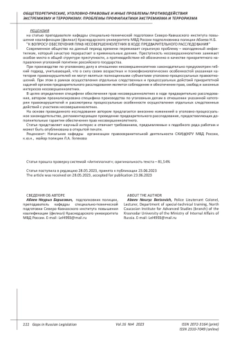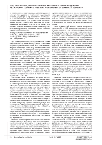 9. Федосеева Е.Л., Цепилова Е.А. Особенности производства предварительного расследования в отношении несовершеннолетних // Закон и правопорядок в третьем тысячелетии: матер. межд. научно-практ. конф.. Калининград, 2021. EDN: RSFFKL