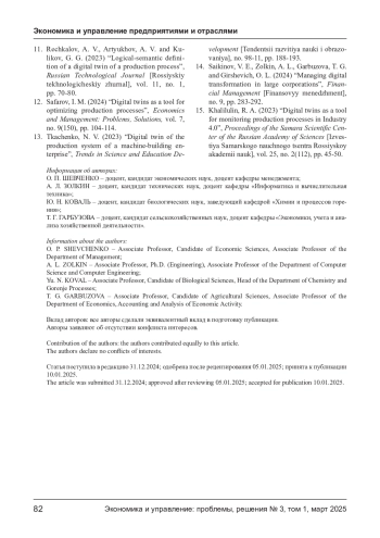 1. Руднев С. Г., Золкин А. Л., Матвиенко Е. В., Гарбузова Т. Г. Влияние цифровизации на эффективность производства в агропромышленном комплексе // Экономика и управление: проблемы, решения. - 2024. - Т. 5, № 9(150). - С. 53-62. EDN: UXBYOY