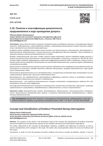 Serednev V.A. Problems of the admissibility of evidence in criminal proceedings // MNKO. 2012. - No. 3. - P. 324-331. EDN: PCHYPL
