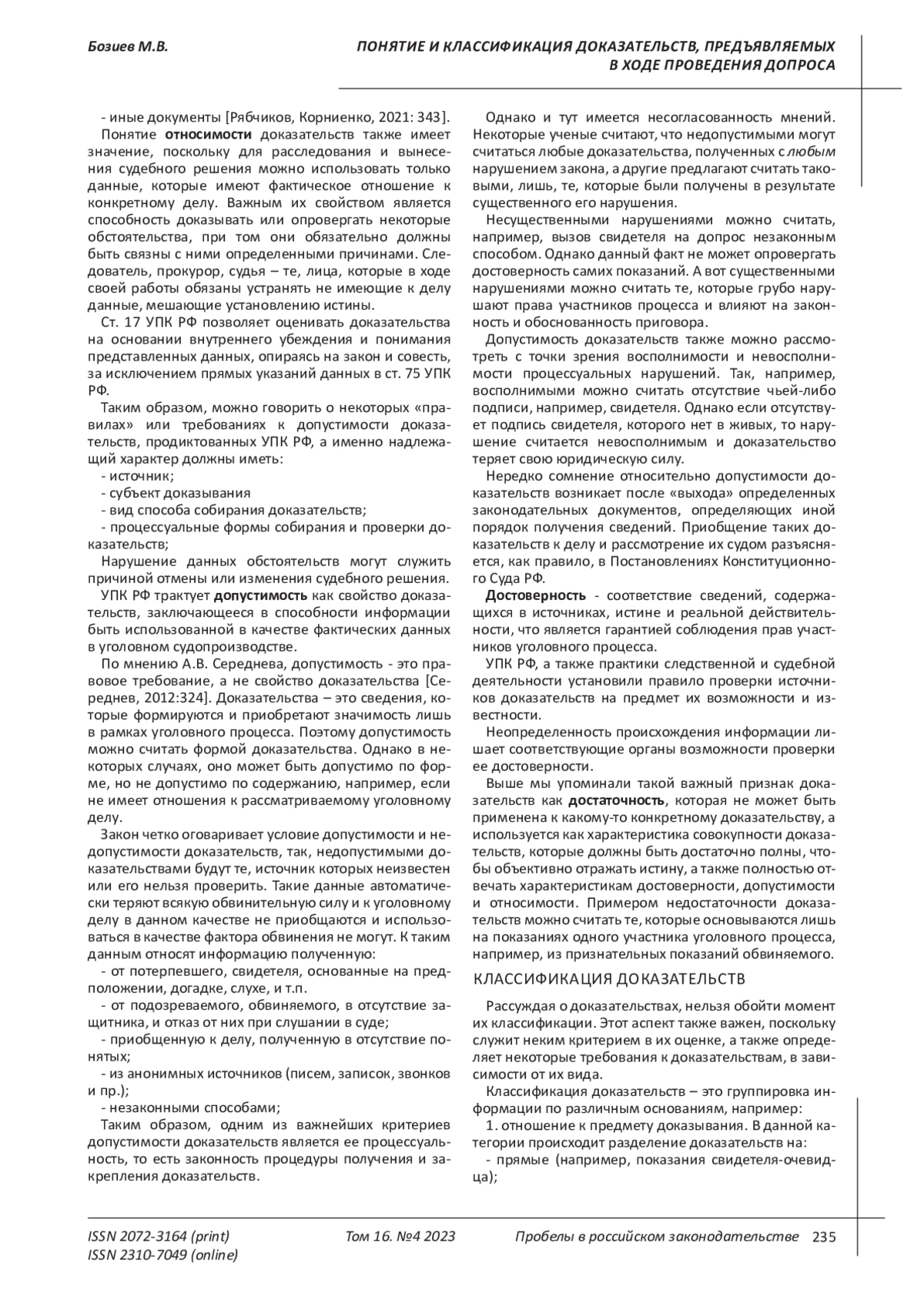 14. Рябчиков В.В., Корниенко Д.О. Проблемы допустимости доказательств в уголовном процессе // StudNet. 2021. - №7. - с. 343-348. EDN: OSFLOH
