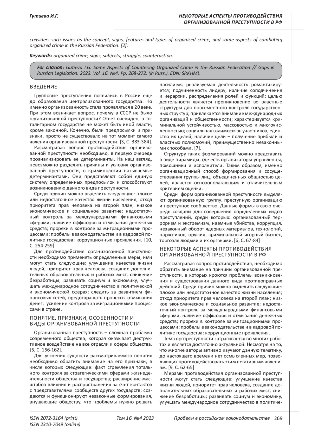 6. Корсаков К.В. Криминологический и уголовно-правовой анализ современной организованной преступности // Научный ежегодник Института философии и права Уральского отделения Российской академии наук. - 2017. - Том 17. - Выпуск 3. - С. 67-84. EDN: ZOLDIN