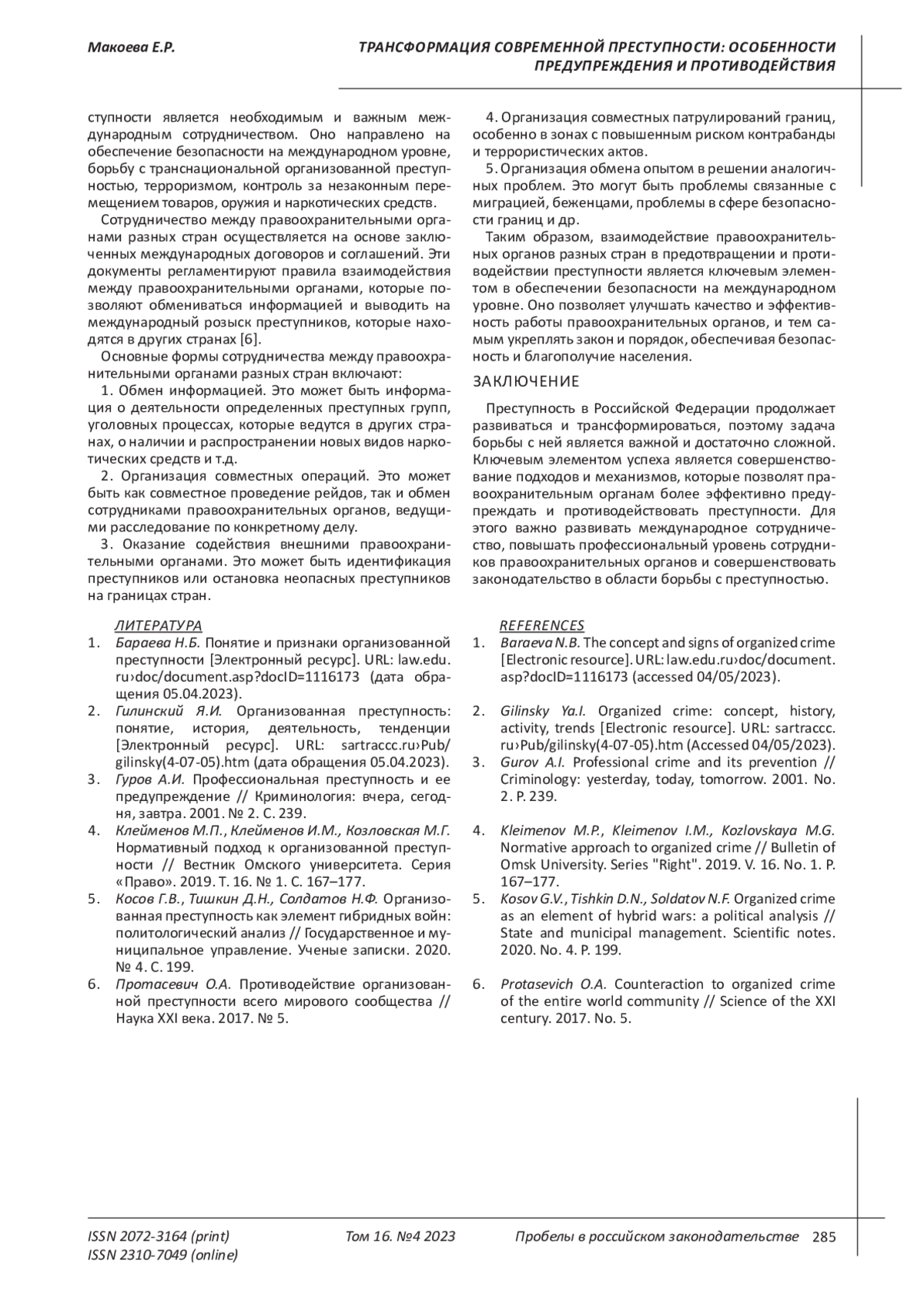 Baraeva N.B. The concept and signs of organized crime [Electronic resource]. URL: law.edu.ru›doc/document.asp?docID=1116173 (accessed 04/05/2023).
