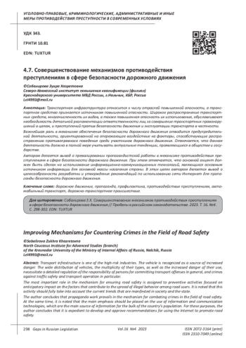 Статья: СОВЕРШЕНСТВОВАНИЕ МЕХАНИЗМОВ ПРОТИВОДЕЙСТВИЯ ПРЕСТУПЛЕНИЯМ В СФЕРЕ БЕЗОПАСНОСТИ ДОРОЖНОГО ДВИЖЕНИЯ (2023)
