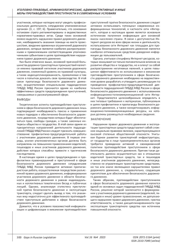 Ключевые фразы: ДОРОЖНОЕ ДВИЖЕНИЕ, пропаганда, профилактика, противодействие преступлениям, автомобильный транспорт, дорожно-транспортное происшествие