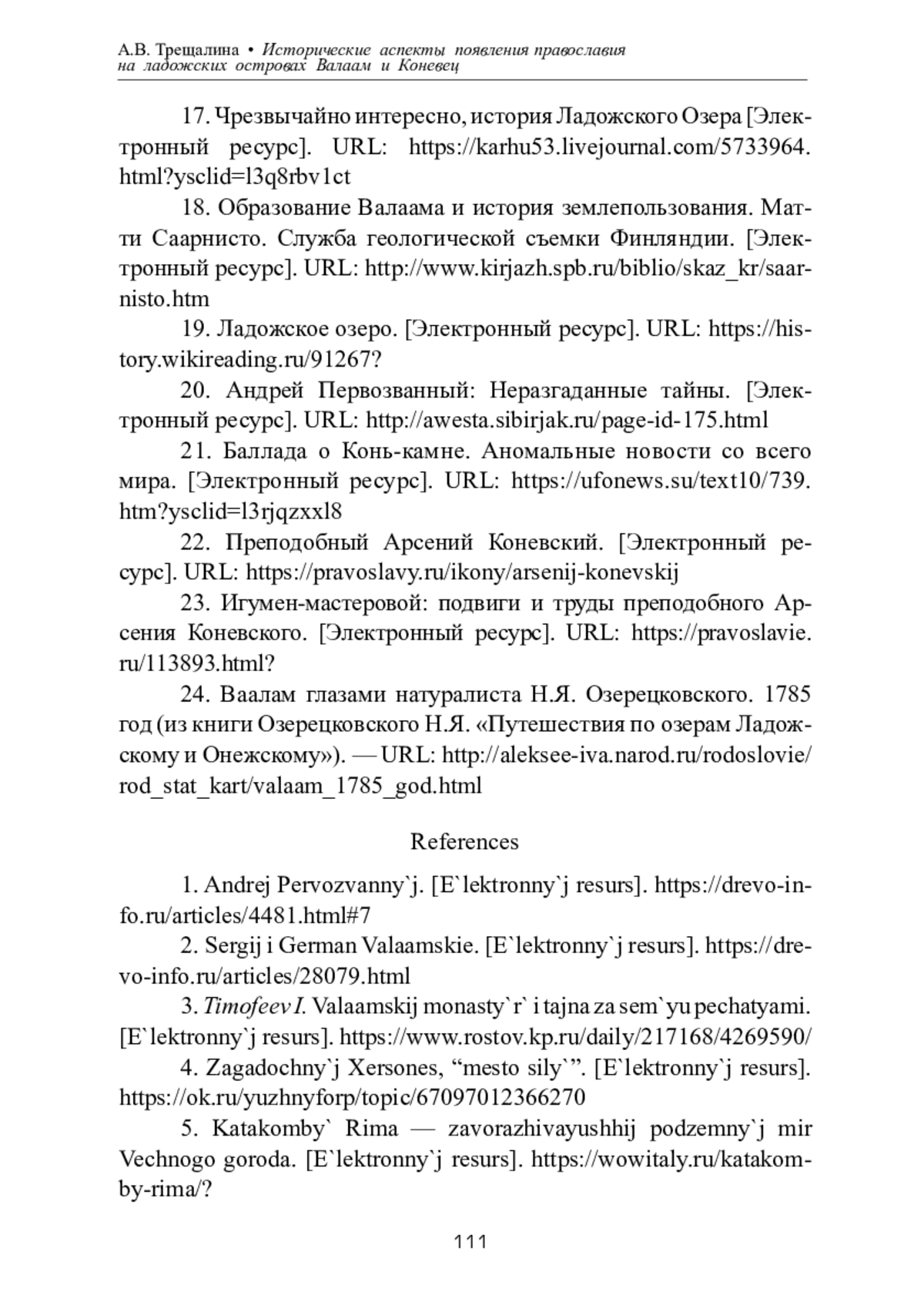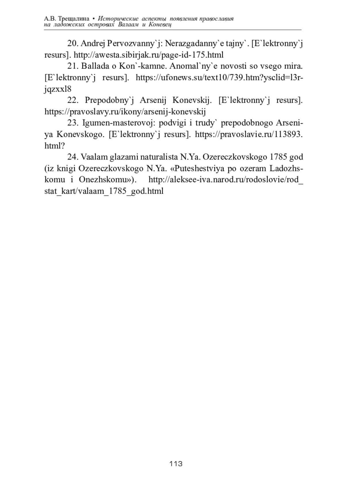 ТРЕЩАЛИНА А. В. ИСТОРИЧЕСКИЕ АСПЕКТЫ ПОЯВЛЕНИЯ ПРАВОСЛАВИЯ НА ЛАДОЖСКИХ ОСТРОВАХ ВАЛААМ И КОНЕВЕЦ // ТЕОРИЯ И ИСТОРИЯ ИСКУССТВА. 2023. № 1-2