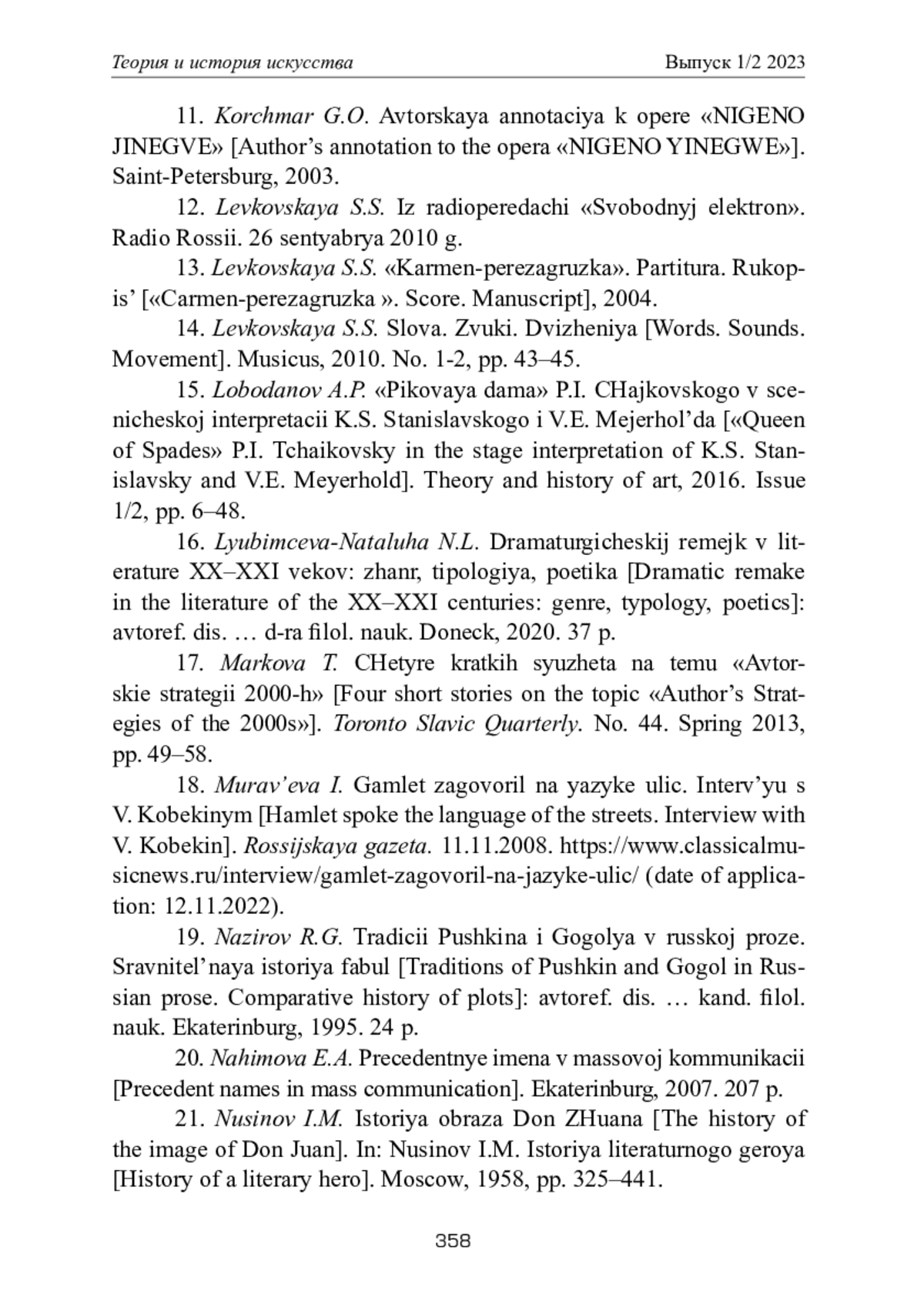 ЗАДНЕПРОВСКАЯ Г. В. ОТЕЧЕСТВЕННАЯ ОПЕРА-РЕМЕЙК В КОНТЕКСТЕ СОВРЕМЕННОЙ КУЛЬТУРЫ // ТЕОРИЯ И ИСТОРИЯ ИСКУССТВА. 2023. № 1-2