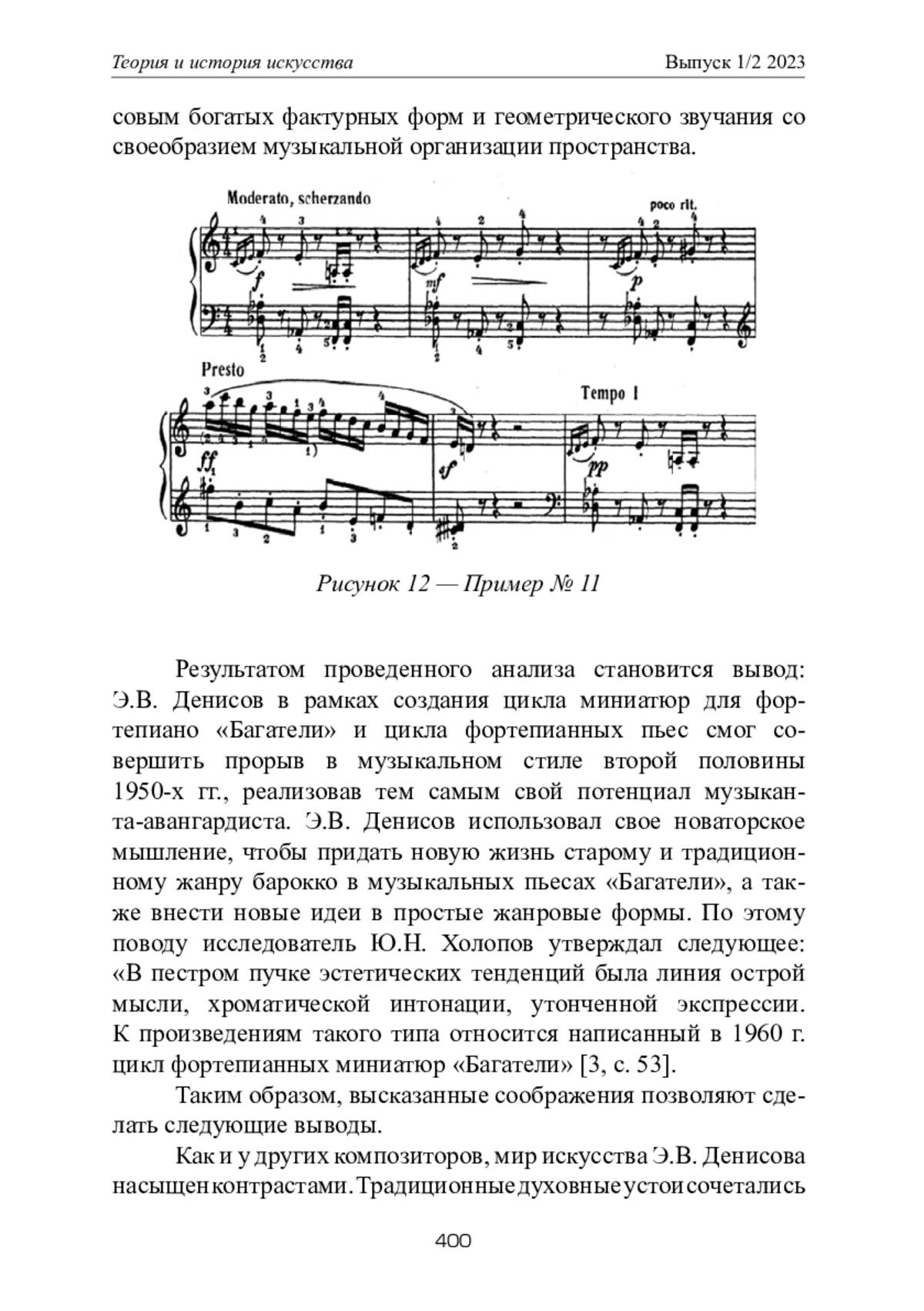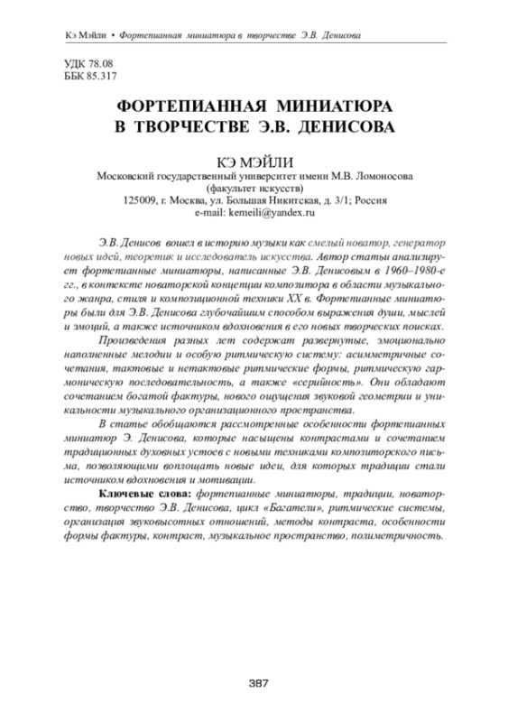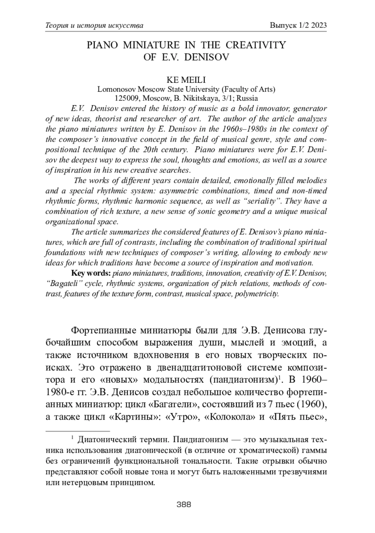 КЭ М. ФОРТЕПИАННАЯ МИНИАТЮРА В ТВОРЧЕСТВЕ Э. В. ДЕНИСОВА // ТЕОРИЯ И ИСТОРИЯ ИСКУССТВА. 2023. № 1-2