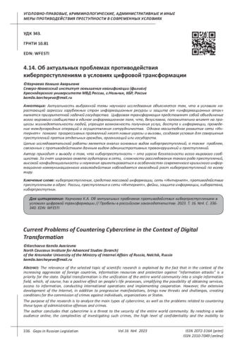 Актуальность выбранной темы научного исследования объясняется тем, что в условиях нарастающей агрессии зарубежных стран информационные ресурсы и защита от «информационных атак» является приоритетной задачей государства. Цифровая трансформация представляет собой объединение всего мирового сообщества в единое информационное поле, что, безусловно, положительно влияет на процессы жизнедеятельности людей, упрощая возможность получения услуг, доступа к информации, проведение международных операций и осуществления сотрудничества. Однако масштабное развитие сети «Интернет» помимо прогрессивных проявлений несет новые угрозы и вызовы, создавая условия для совершения преступлений против отдельных граждан, организаций или государств. Целью исследовательской работы является анализ основных видов киберпреступлений, а также проблем, связанных с противодействием данным видам административных правонарушений и преступлений. Автор приходит к выводу о том, что киберпреступность - это угроза безопасности всего мирового сообщества. За счет широкого охвата аудитории в сети, сложности расследования такого рода преступлений, высокой конфиденциальности и неумения ориентироваться в особенностях современного кризисного информационно-коммуникационного взаимодействия наблюдается ежегодный рост киберпреступлений по всему миру.