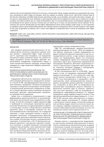 Gutaev A.M. On the issue of criminal legal assessment of persons driving vehicles in a state of intoxication // Gaps in Russian legislation. 2022. Vol. 15. No. 5. pp. 195-199. EDN: KUIEGJ