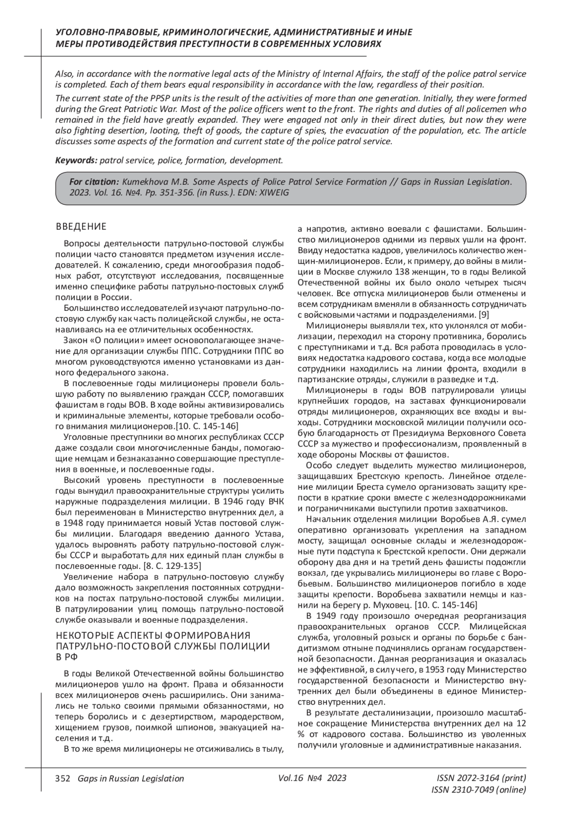 4. Каримова Г.Ю. Исторический аспект становления патрульно-патрульно-постовой службы полиции в России //Modern Science.2022. № 2. С. 200-203.