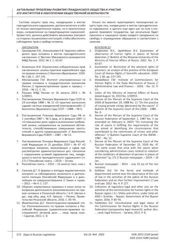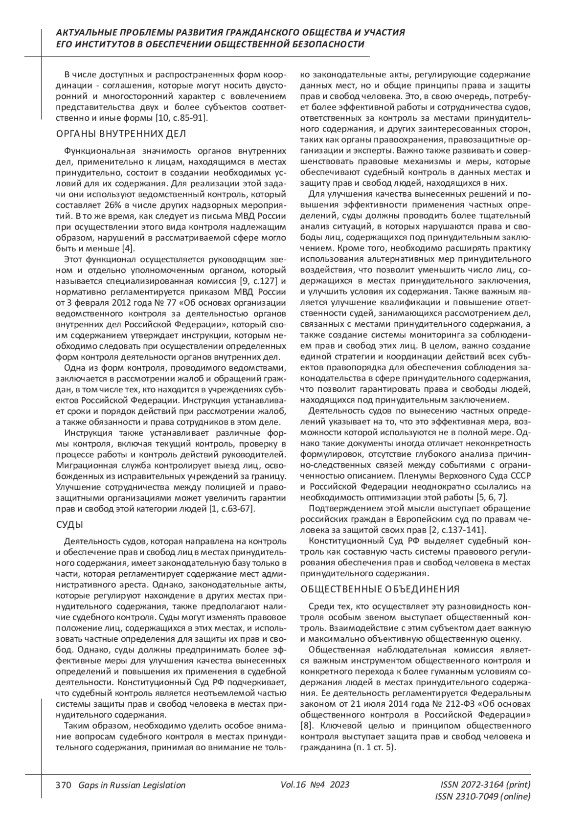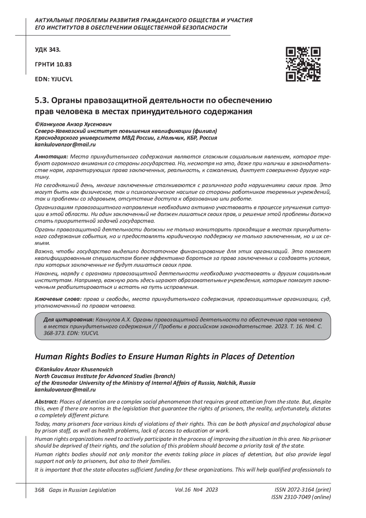 Статья: ОРГАНЫ ПРАВОЗАЩИТНОЙ ДЕЯТЕЛЬНОСТИ ПО ОБЕСПЕЧЕНИЮ ПРАВ ЧЕЛОВЕКА В МЕСТАХ ПРИНУДИТЕЛЬНОГО СОДЕРЖАНИЯ (2023)
