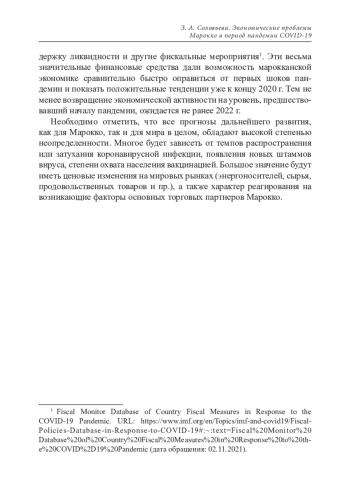 3. Morocco Economic Monitor: From Relief to Recovery. Fall 2020. P. 1. URL: https://www.worldbank.org/en/country/morocco/publication/morocco-economic-monitor-fall-2020-from-relief-to-recovery (дата обращения: 30.10.2021).
