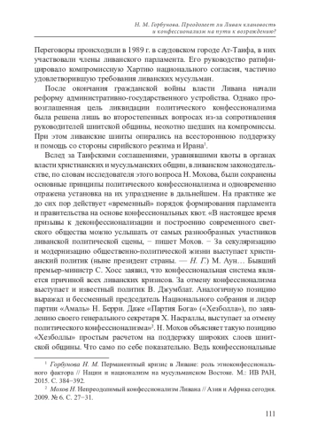 1. Горбунова Н. М. Перманентный кризис в Ливане: роль этноконфессионального фактора // Нации и национализм на мусульманском Востоке. М.: ИВ РАН, 2015. EDN: VDUVYP