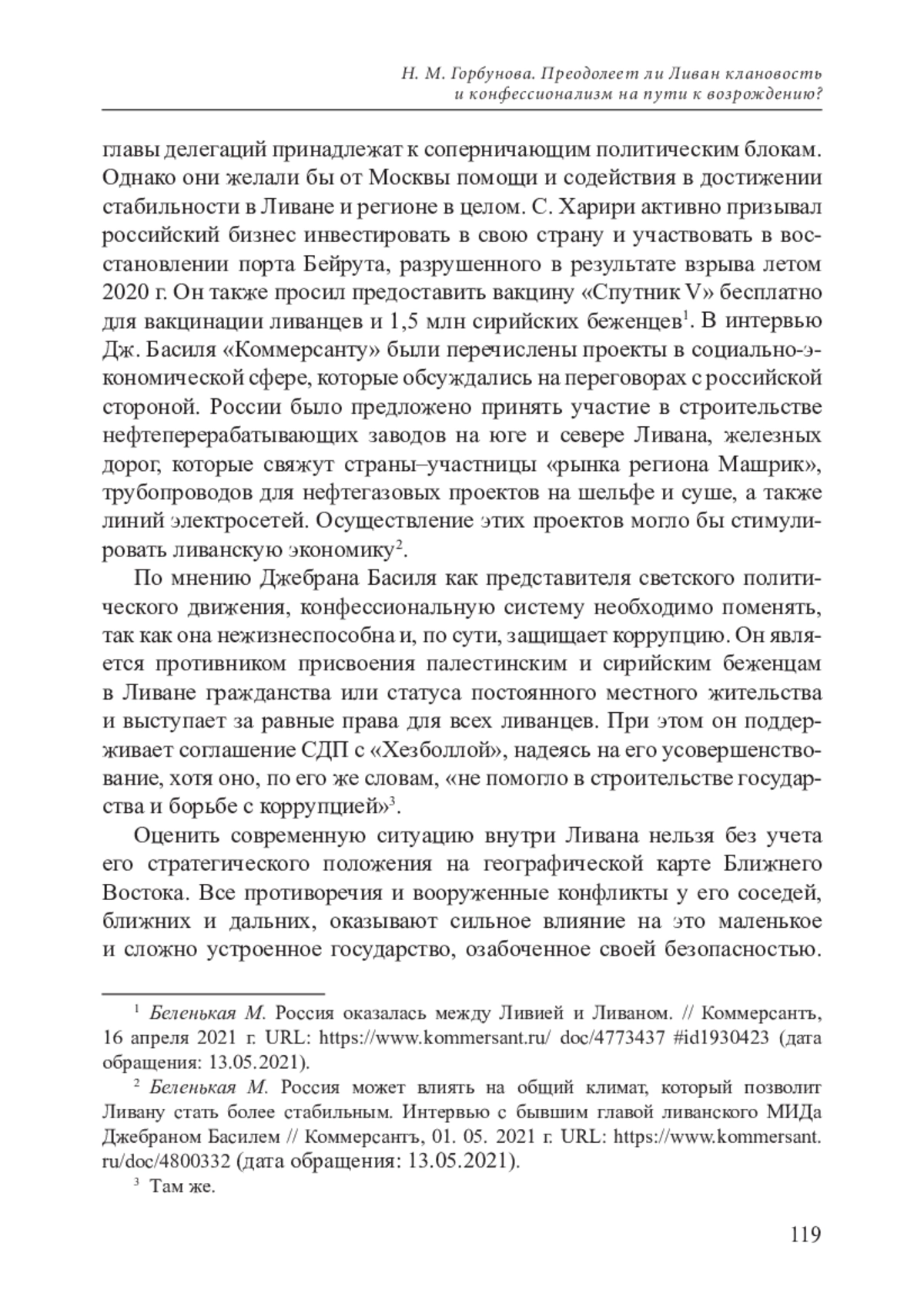 2. Горбунова Н. М. Ливан: новая фаза политического кризиса // Вестник ИВ РАН. 2020. № 4 (14). EDN: MTRGKU