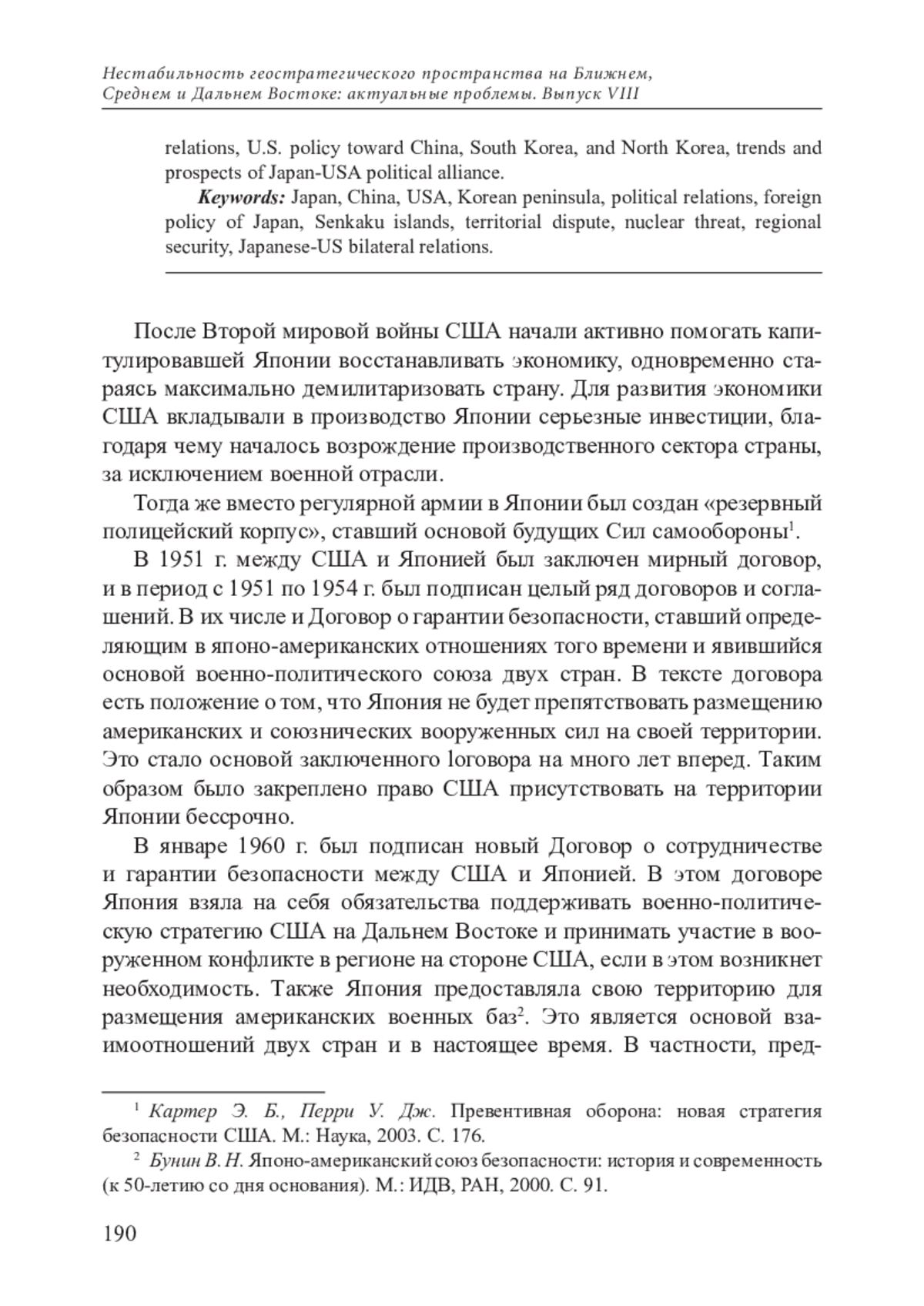 1. Бунин В. Н. Японо-американский союз безопасности: история и современность (к 50-летию со дня основания). М.: ИДВ РАН. 2000.