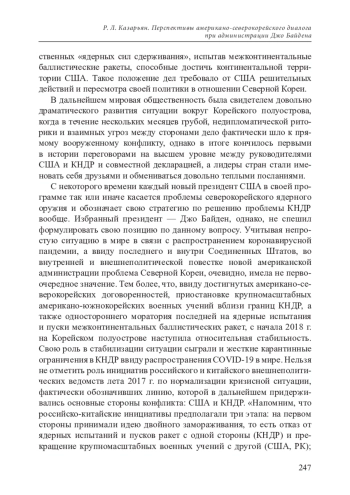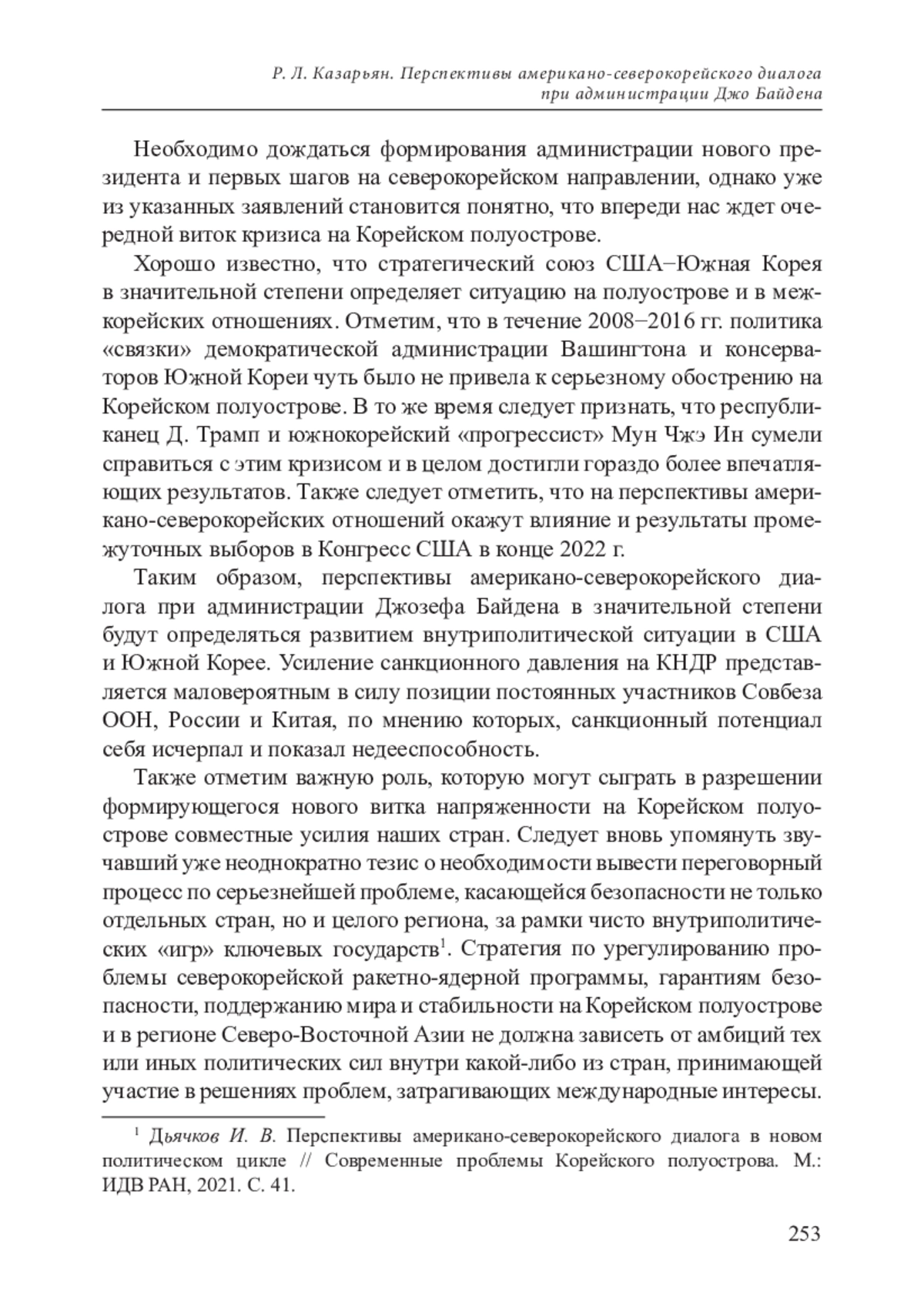 1. Дьячков И. В. Перспективы американо-северокорейского диалога в новом политическом цикле // Современные проблемы Корейского полуострова. М.: ИДВ РАН, 2021.