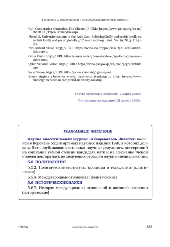 2. Косач Г. «Видение: 2030» Саудовские реформы // Свободная мысль. 2016. № 6. С. 107-124. [Kosach G. «Videnie: 2030» Saudovskie reformy // Svobodnaya mysl’. 2016.№6. S. 107-124]