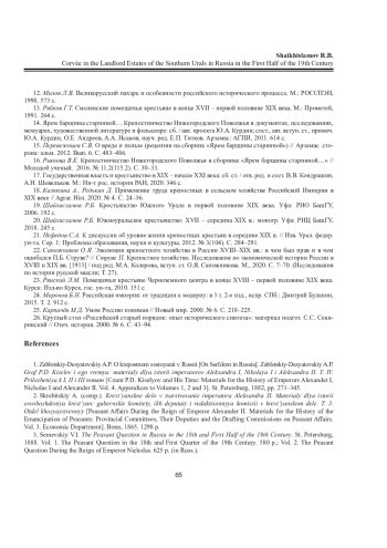 18. Казюхина А., Редькин Д. Применение труда крепостных в сельском хозяйстве Российской Империи в XIX веке // Agrar. Hist. 2020. No 4. С. 24-36. EDN: UUXMQQ