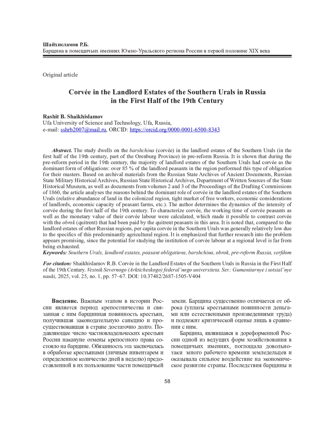 20. Шайхисламов Р.Б. Южноуральское крестьянство: XVII - середина XIX в.: моногр. Уфа: РИЦ БашГУ, 2018. 245 с. EDN: YNXUAX