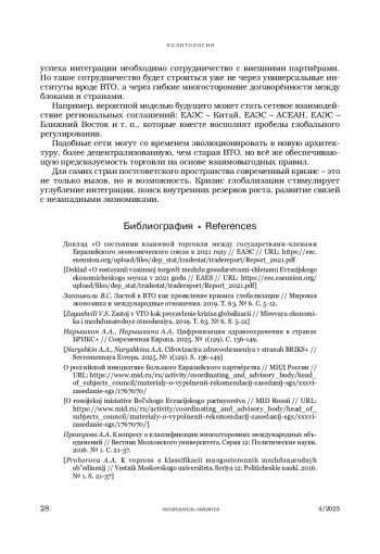 7. Hopewell K. Unravelling of the trade legal order: enforcement, defection and the crisis of the WTO dispute settlement system // International Affairs. 2025. Vol. 101. № 2. Р. 341-362.