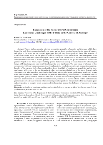Футурологические исследования в настоящее время учитывают принципы равенства и толерантности, ставшие основой постмодернистского интеллектуального пространства, и направлены на критическое осмысление статуса человека, его места в мире и облика, который он приобретет в прогнозируемом будущем. Включение в социокультурный континуум агентов природного мира и сферы искусственного разума подталкивает к пересмотру ценностей, составляющих аксиологическое ядро цивилизации. Ревизия гуманистического идеала и антропоцентрического мировоззрения, в свою очередь, заставляет переосмысливать нормы права, политики и человеческого бытия вообще. Проекты будущего предлагают выстраивание систем, обеспечивающих равенство ценностных установок для всех разумных существ, всех живых существ и некоторых неживых существ, имеющих значимость. Идеальный образ человека, таким образом, дополняется не-человеческими характеристиками, что приводит к мысли об антигуманистической его направленности. Равенство расширенного круга субъектов аксиологии скрывает ловушки возникновения новых неравенств, и в том, какое место займет в созданной иерархии ценностей человек, заключается экзистенциальный вызов будущего. Применение характерного для микронарративов исследовательского инструментария к проблемам общечеловеческого масштаба показало слабую эффективность. Микронарративы не учитывают прогнозируемых рисков, следующих за наделением субъектностью не-человеческих агентов аксиологии. Исследования, проводимые на уровне культур и цивилизаций, тяготеют к классическому подходу: установлению причинно-следственных связей, погружению в кросскультурный контекст, максимальному обобщению индивидуальных позиций при ответах на сущностные вопросы. Пластичность аксиологического пространства предполагает возможность оперативного формирования сценариев будущего, основанных на включении в человеческое бытие вызовов завтрашнего дня.