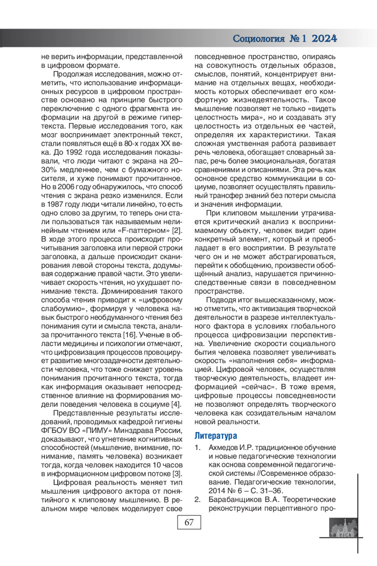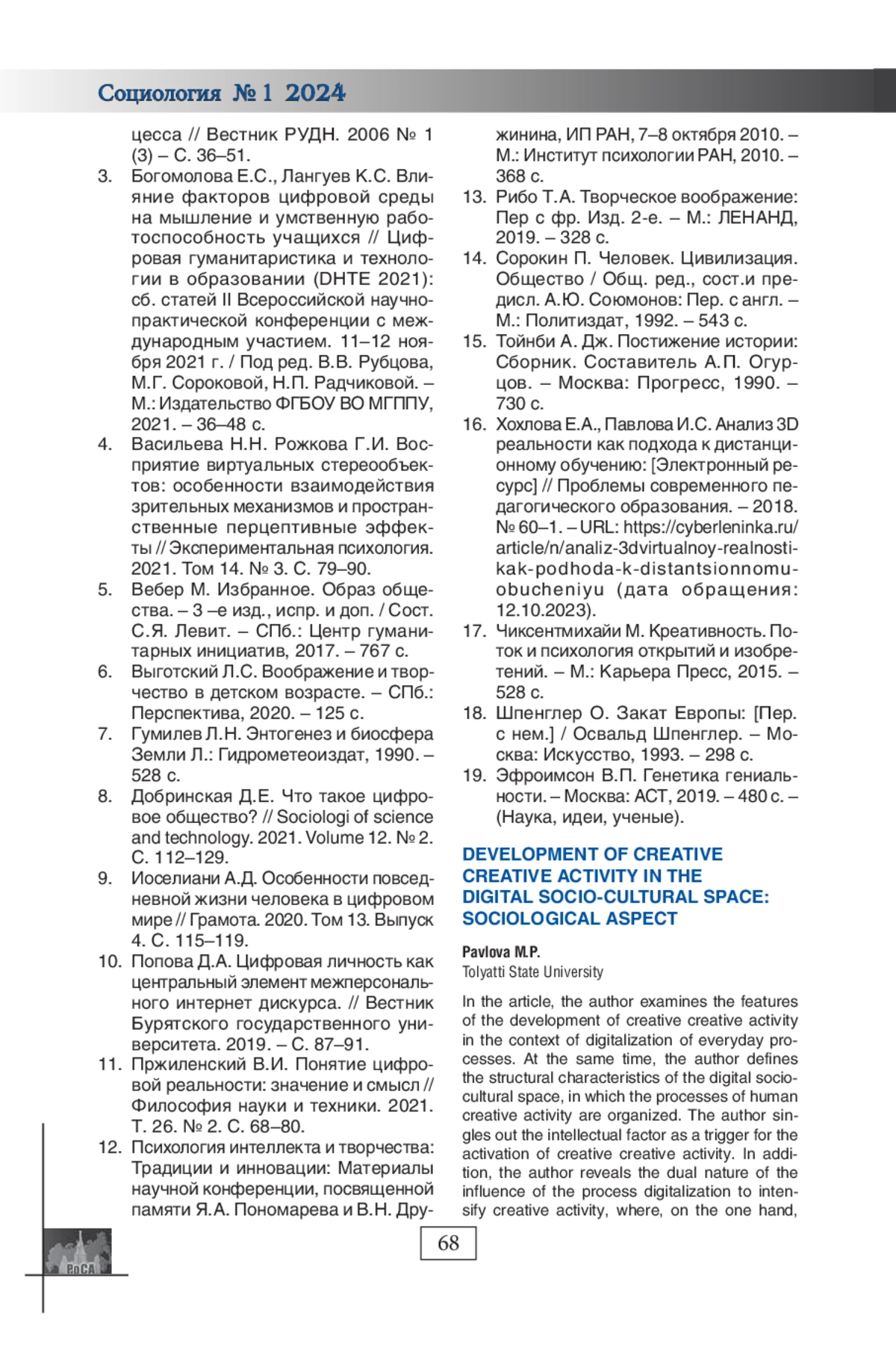 8. Добринская Д.Е. Что такое цифровое общество? // Sociologi of science and technology. 2021. Volume 12. № 2. С. 112-129.