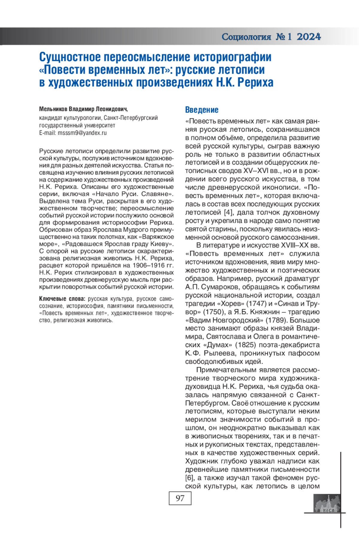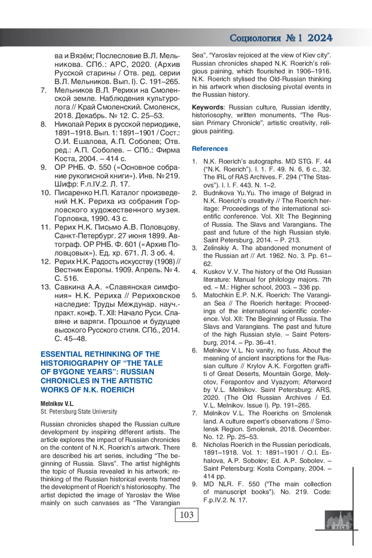 7. Мельников В.Л. Рерихи на Смоленской земле. Наблюдения культуролога // Край Смоленский. Смоленск, 2018. Декабрь. № 12. С. 25-53.