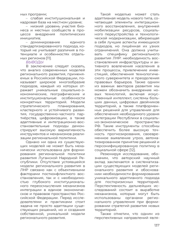 Ключевые фразы: РЕГИОНАЛЬНАЯ ПОЛИТИКА, РЕГИОНАЛЬНОЕ РАЗВИТИЕ, адаптивная модель, инновационно-кластерная модель, пространственное развитие, государственно-частное партнерство, устойчивое развитие, цифровизация