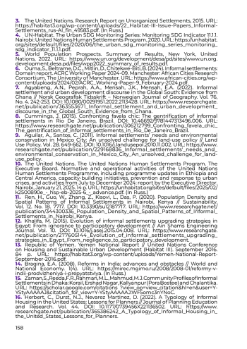 6. Ouma S., Beltrame D.C., Mitlin D., Chitekwe-Biti B. Informal settlements: Domain report. ACRC Working Paper 2024-09. Manchester: African Cities Research Consortium, The University of Manchester, 2024. URL: https://www.african-cities.org/wp-content/uploads/2024/02/ACRC_Working-Paper-9_February-2024.pdf.