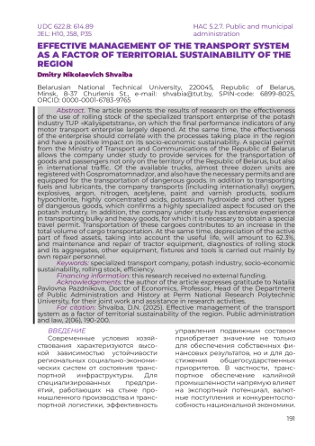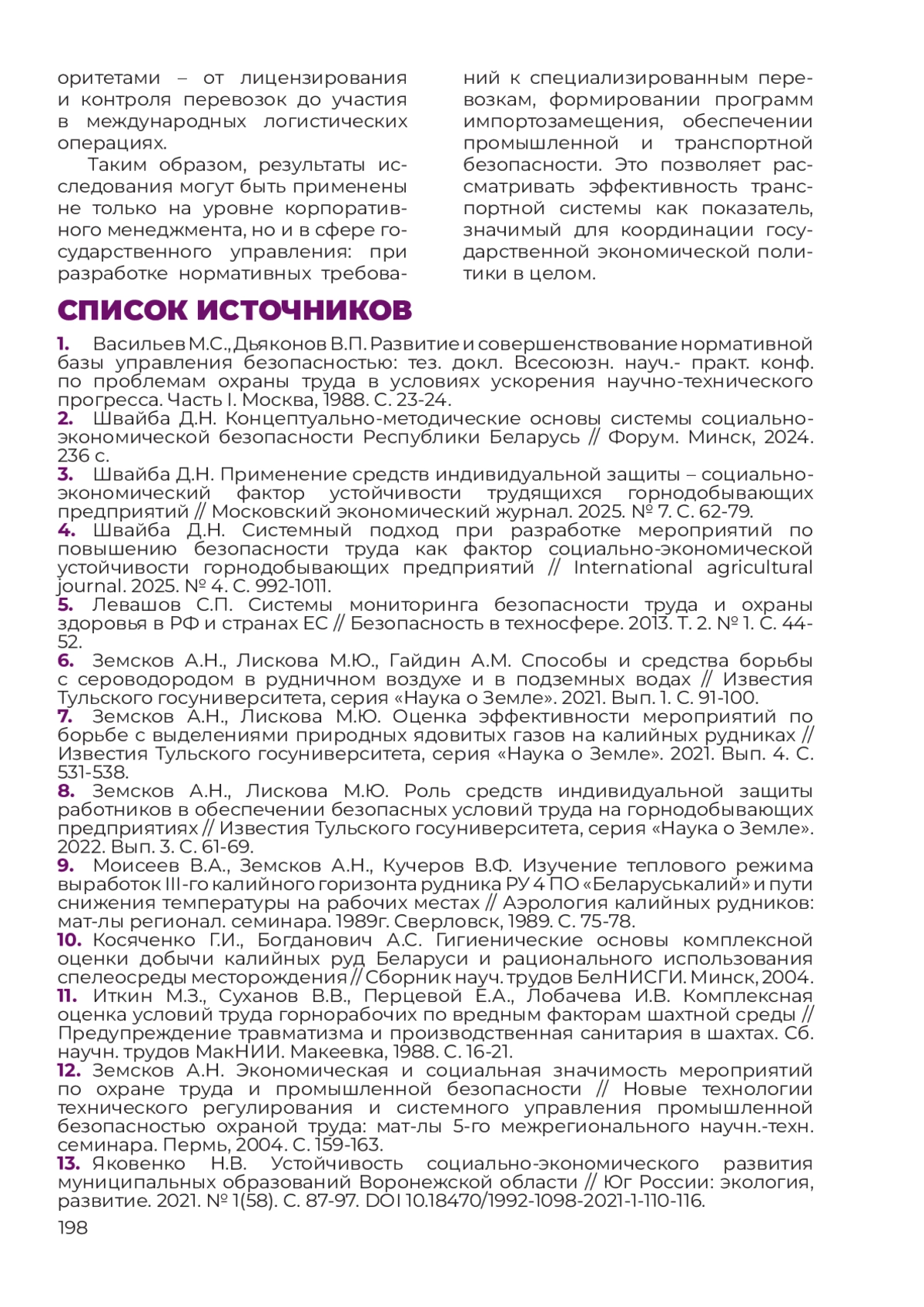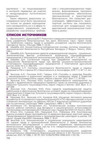 4. Швайба Д.Н. Системный подход при разработке мероприятий по повышению безопасности труда как фактор социально-экономической устойчивости горнодобывающих предприятий // International agricultural journal. 2025. № 4. С. 992-1011.