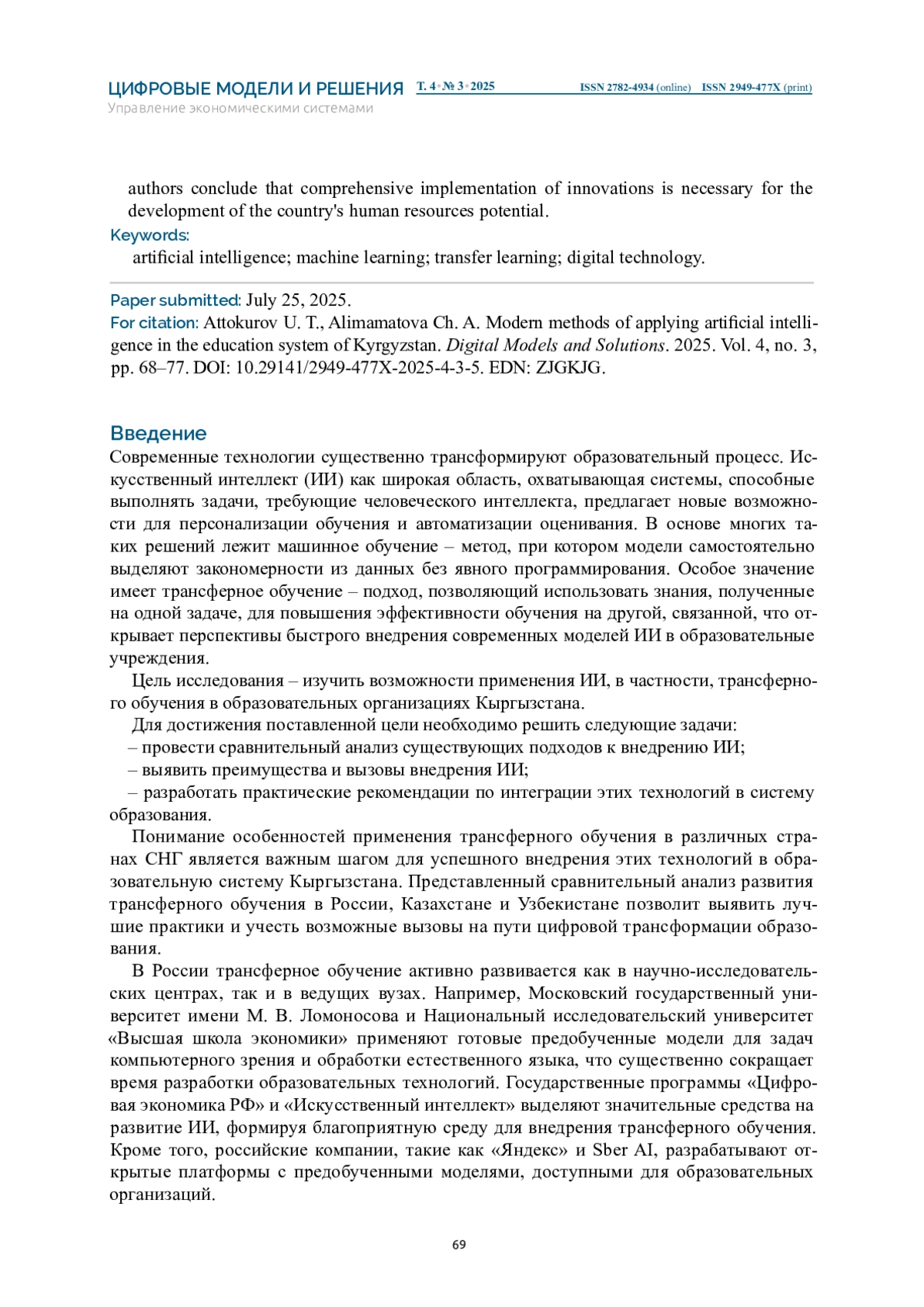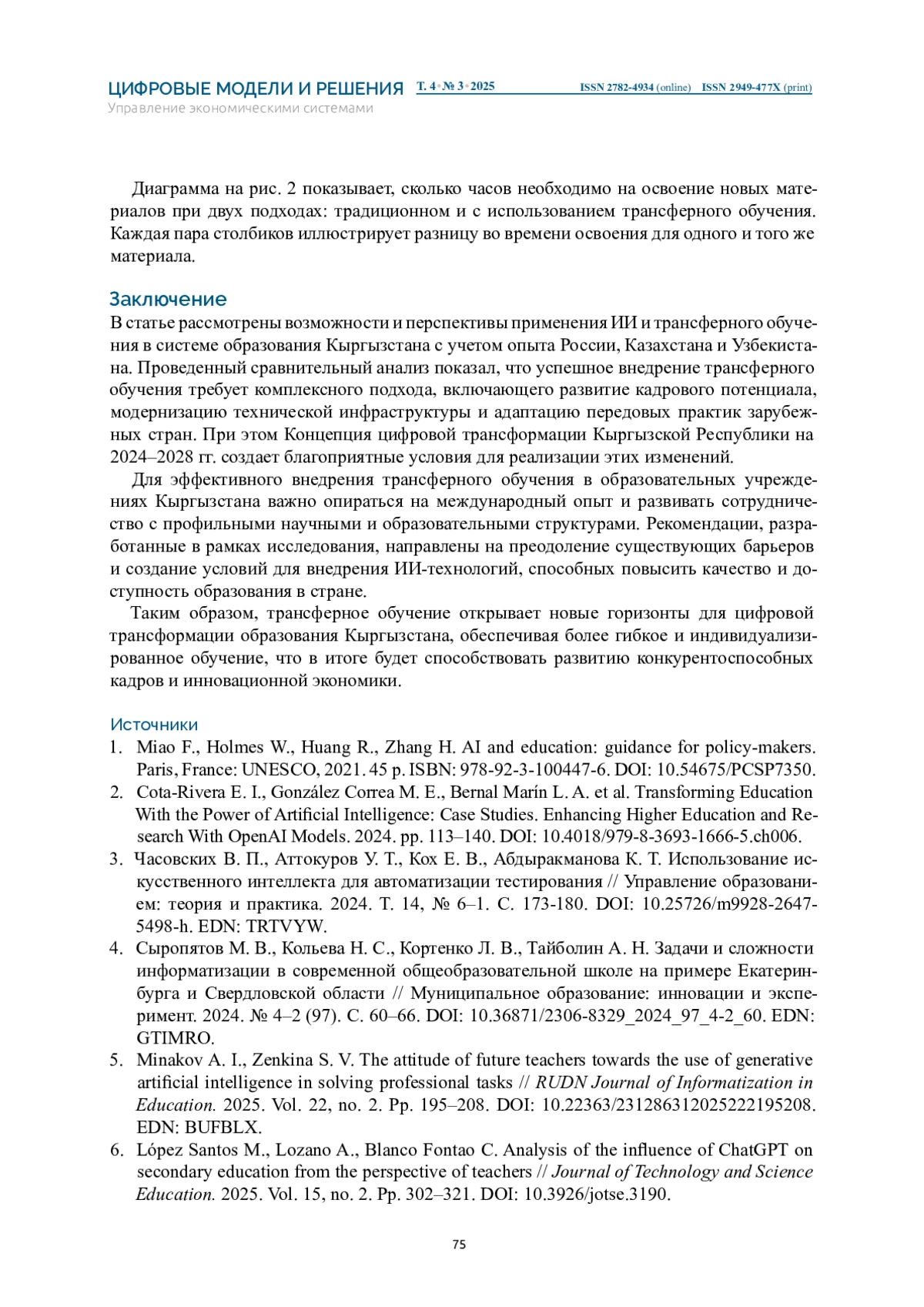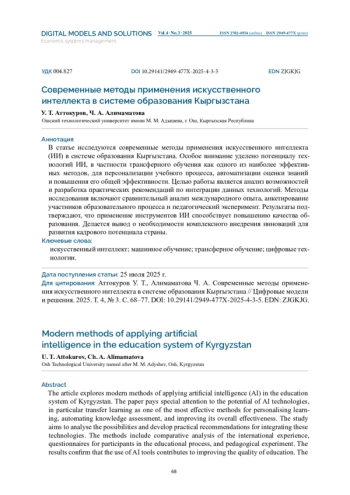 8. Гумерова Л. З., Мышкина И. Ю. Применение методов искусственного интеллекта в системах управления дистанционным обучением // Russian Journal of Education and Psychology. 2024. Т. 15, № 1-2. С. 165-173. EDN: DLBAGY