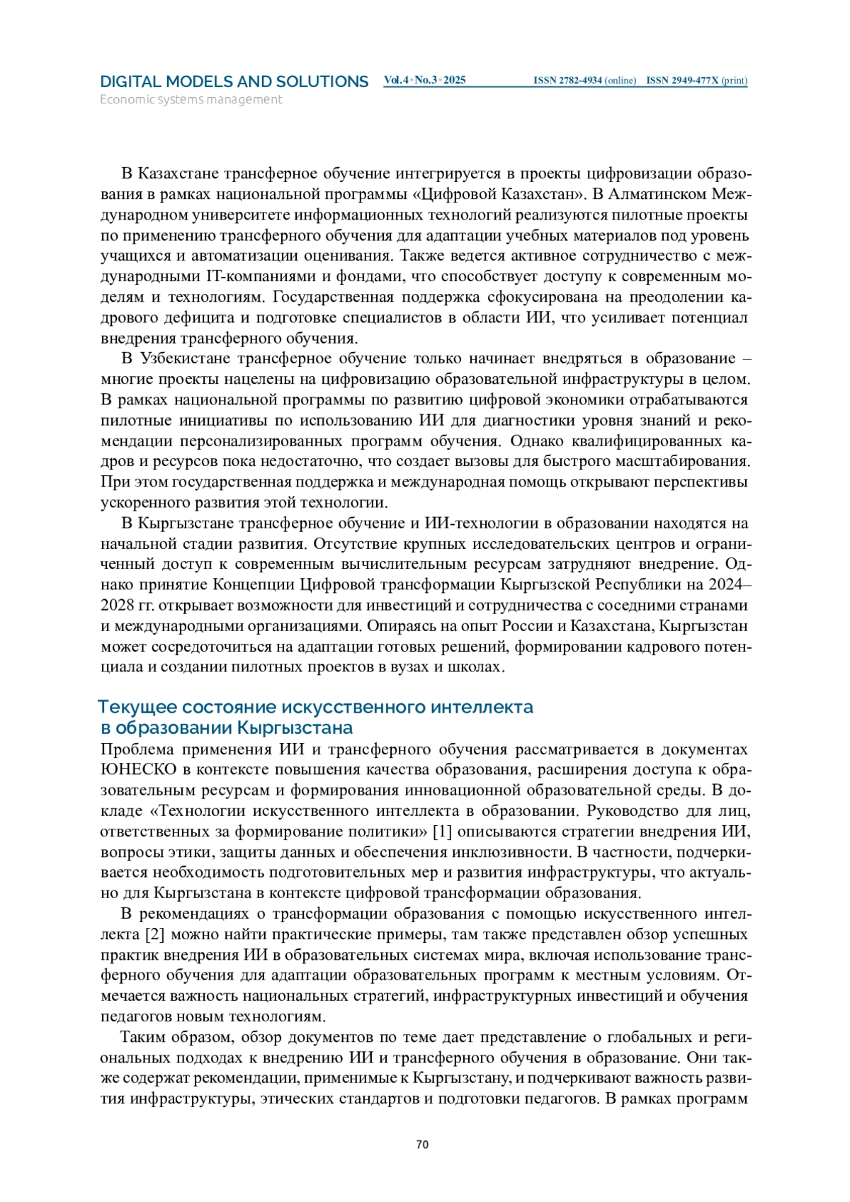 7. Часовских В. П., Сагымбаев А. А., Аттокуров У. Т., Кох Е. В., Сагымбаев А. А. Перспективы развития виртуальных университетов Киргизии // Управление образованием: теория и практика. 2024. Т. 14, № 8-1. С. 258-266. DOI: 10.25726/e4758-3125-4699-h EDN: PYAOUS