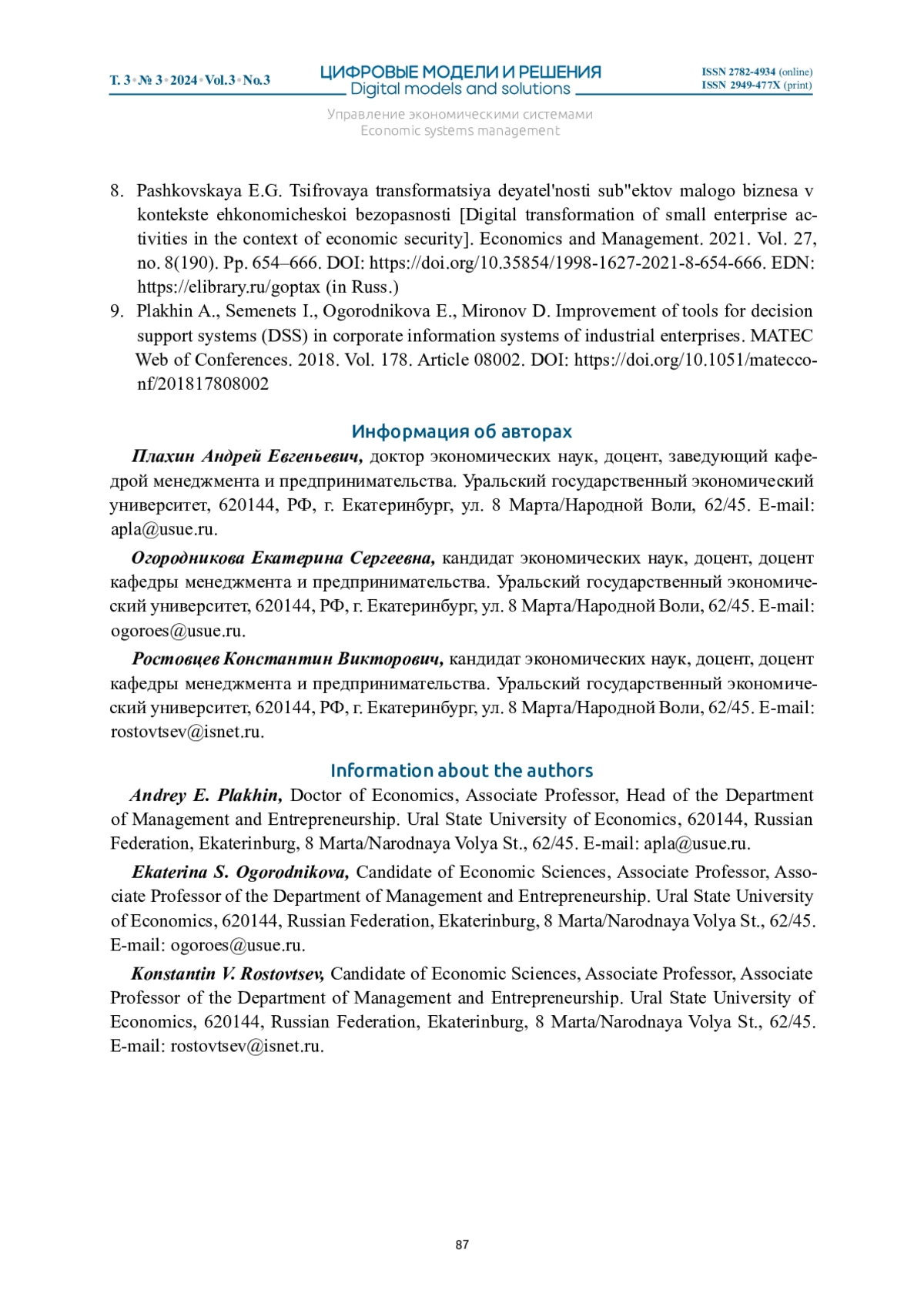 Журнал: ЦИФРОВЫЕ МОДЕЛИ И РЕШЕНИЯ