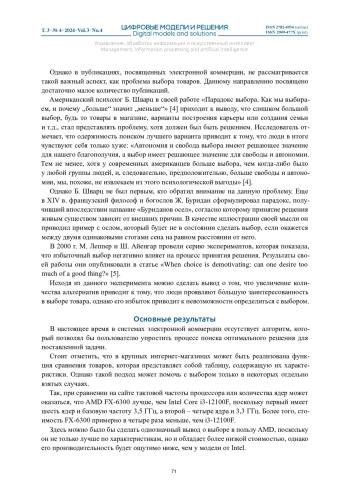 Исследование включает анализ существующих проблем, которые возникают в процессе выбора товара, в том числе сложных технических устройств. На основе проведенного анализа в статье предлагается организационно-экономический механизм, позволяющий внедрить в деятельность интернет-магазина рекомендательную систему, которая дает возможность упростить процесс выбора товара для пользователя. Данный инструмент предоставит организации конкурентное преимущество и позволит повысить посещаемость сайта, конверсию продаж и лояльность покупателей, что особенно актуально с учетом растущей конкуренции в онлайн-торговле