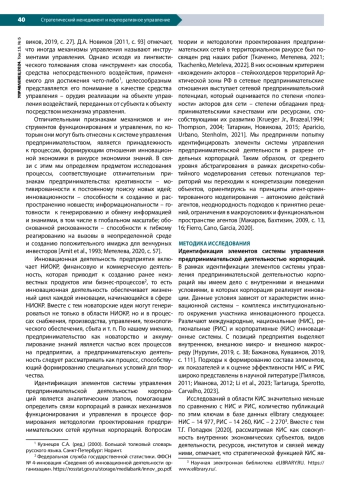 Отставание российской экономики по темпам инновационного роста от наиболее развитых стран требует поиска релевантных подходов к управлению социально-экономическими системами для сохранения их конкурентоспособности и устойчивого развития. Крупные корпорации обладают значимым ресурсным потенциалом и публичным весом, в связи с чем необходимо совершенствовать управление их предпринимательской деятельностью, являющейся импульсом инновационного развития. Статья посвящена диагностике качественного состояния систем управления предпринимательской деятельностью крупных корпораций и оценке их инновационной результативности. Методологическую базу исследования составили теории корпоративного управления и менеджмента. Методы работы включают качественный, регрессионный и сравнительный анализ. Информационную базу составили данные 160 корпораций рейтинга ТОП-600 RAEX (2023 г.), представляющих 21 отрасль промышленности, а также данные Федеральной службы государственной статистики и Всероссийской системы данных о компаниях и бизнесе «За честный бизнес» за 2010–2022 гг. В результате исследования идентифицированы 19 элементов системы управления предпринимательской деятельностью крупных корпораций (наличие центра научных разработок, поддержка стартапов, приверженность концепции открытых инноваций, корпоративный венчурный фонд и т. п.) и оценена интенсивность их применения в отраслевом разрезе. Кроме того, не обнаружена статистическая связь между показателями деятельности многих корпораций и объемом отгруженной инновационной продукции. Таким образом, выявлено отсутствие инновационной результативности систем управления предпринимательской деятельностью большого числа корпораций, что требует дальнейшего исследования их качественного состояния