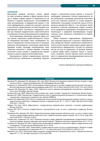2. Белоусов С.А., Николаев В.Е. (2021). Использование открытых данных в системе государственной научной аттестации // Вестник Саратовской государственной академии права. № 6. С. 85-92. DOI: 10.24412/2227-7315-2021-6-85-92 EDN: OWUMVD