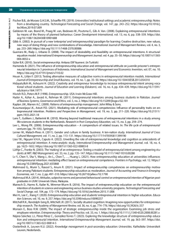 32. Heuer A., Liñán F. (2013). Testing alternative measures of subjective norms in entrepreneurial intention models. International Journal of Entrepreneurship and Small Business, vol. 19, no. 1, pp. 35-50. DOI: 10.1504/IJESB.2013.054310 EDN: RICEXF