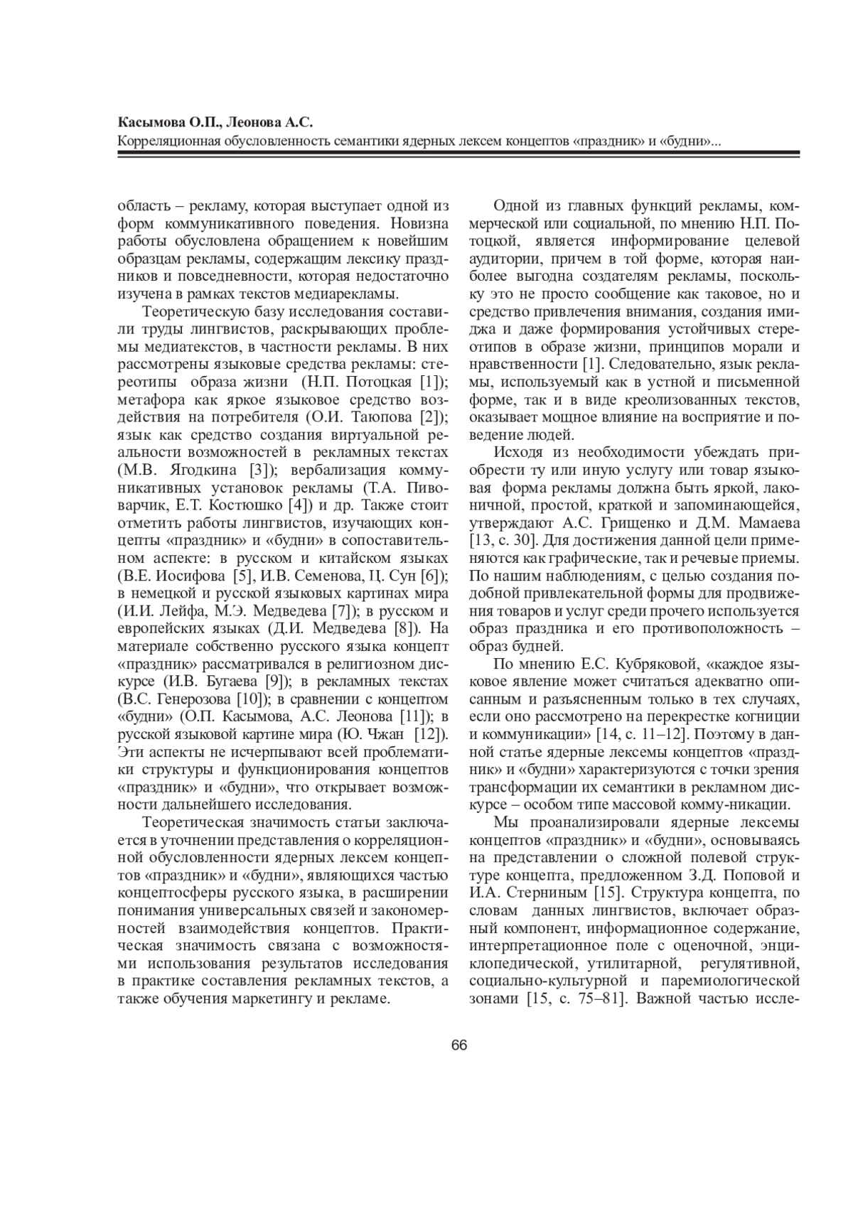 11. Касымова О.П., Леонова А.С. Симметрия и асимметрия семантической структуры многозначных слов “праздник” и “будни” // Рос. гуманит. журн. 2022. Т. 11, No 5. С. 382-389. EDN: DLCCFN