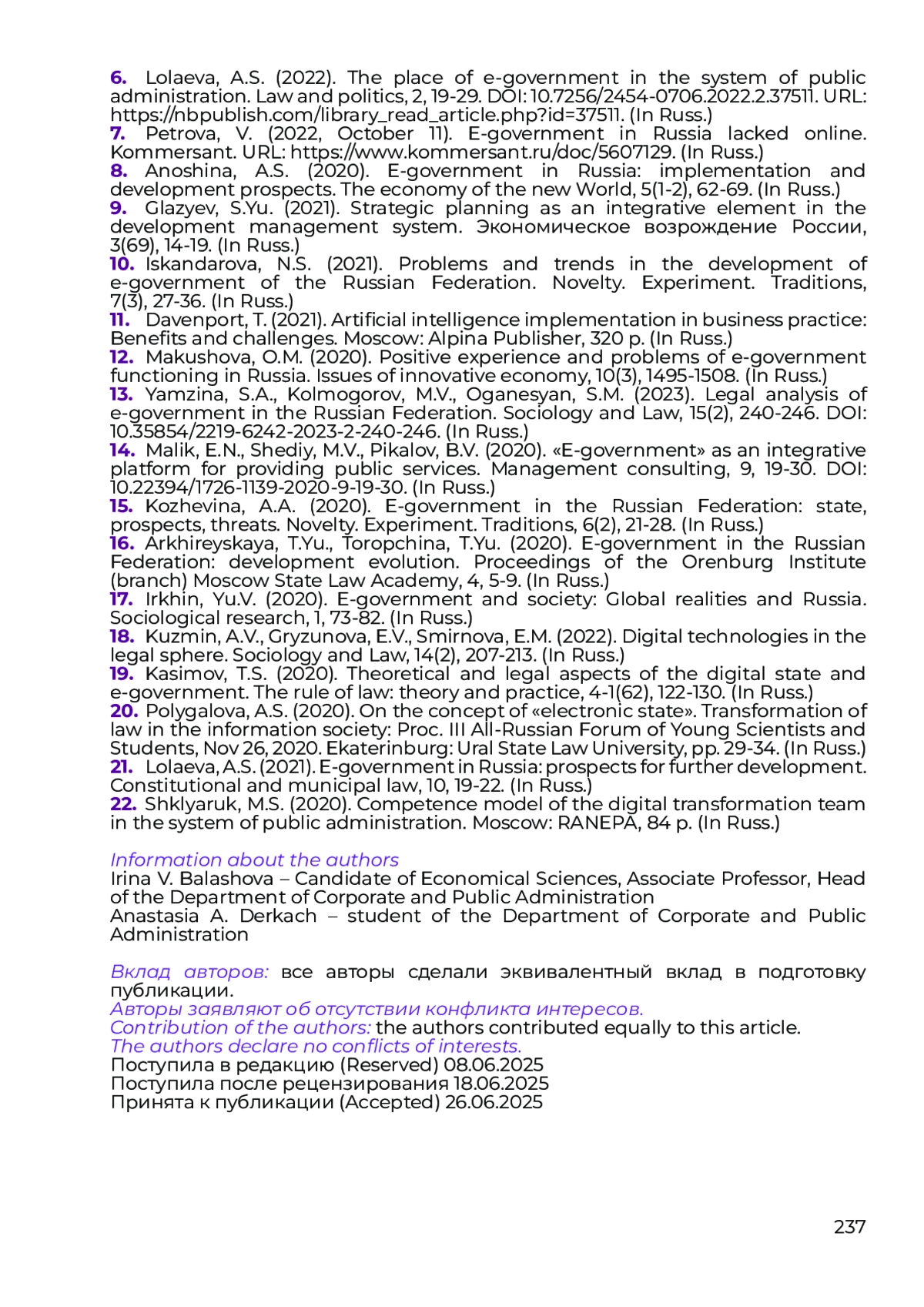 Статья: РАЗВИТИЕ ЭЛЕКТРОННОГО ПРАВИТЕЛЬСТВА В РОССИИ: ОТ МЕЖДУНАРОДНЫХ СТАНДАРТОВ К НАЦИОНАЛЬНОЙ ПРАКТИКЕ (2025)