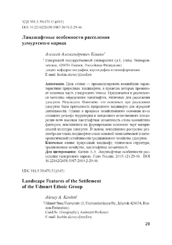 4. Кашин А. А. Исследование ландшафтной организации территории Удмуртии как фактора хозяйственного освоения и расселения населения: автореф. дис.... канд. геогр. наук: 25.00.23. Пермь, 2015. 24 с.