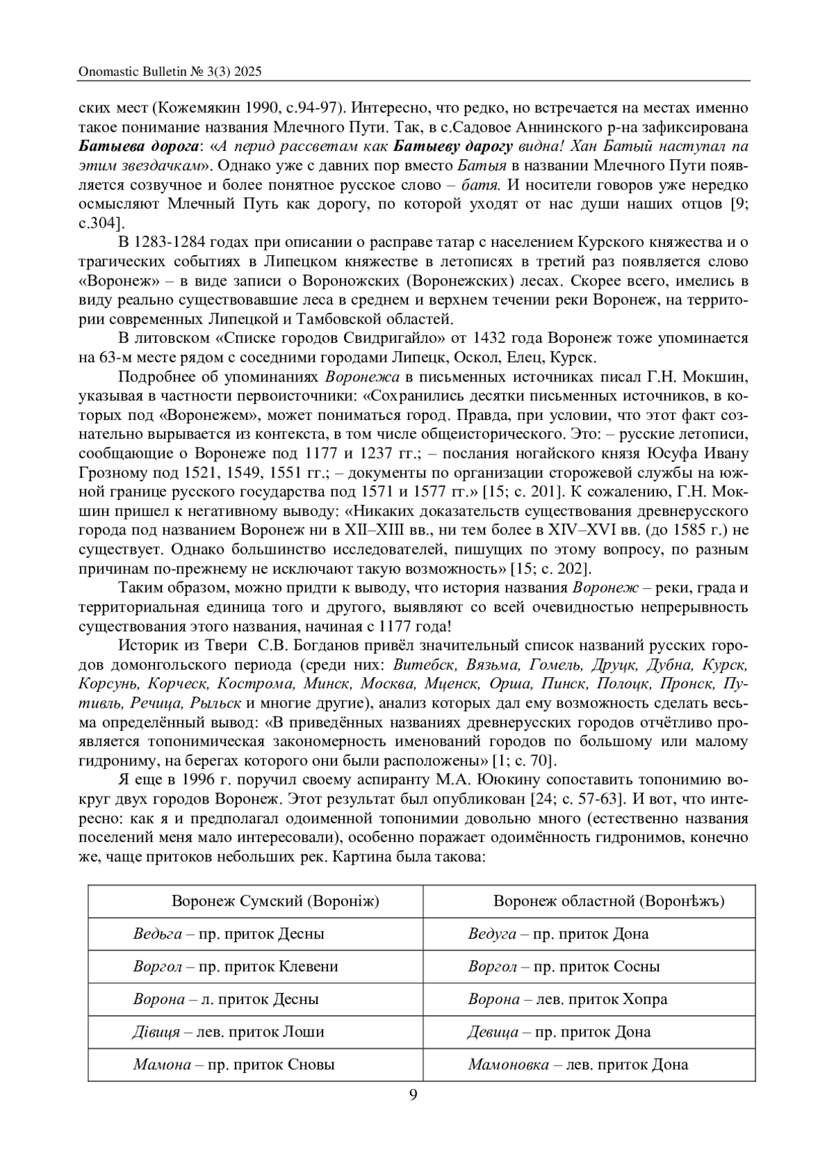 24. Ююкин М.А. Топонимические параллели Черниговского княжества и Среднего Подонья // Край Воронежский: история и традиции. Вып.1.Воронеж, 1996, с.57-63.
