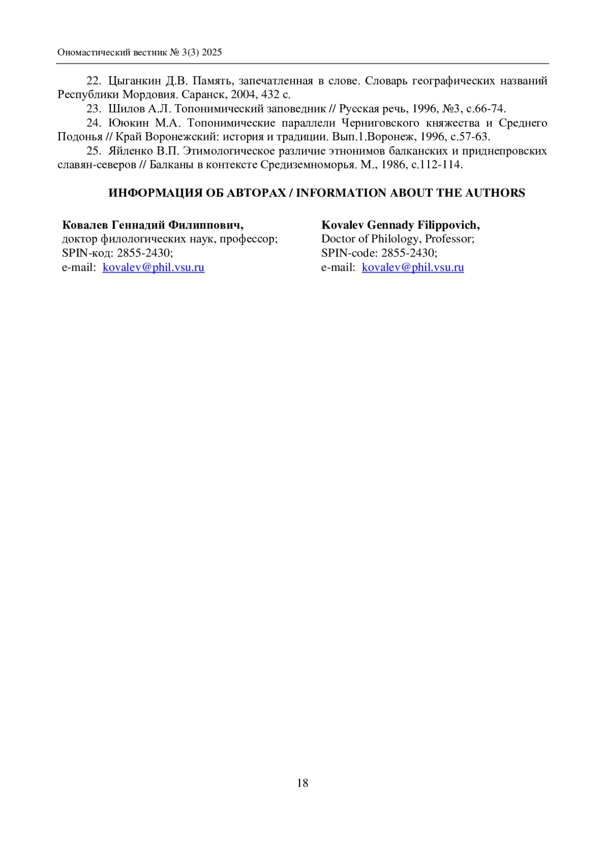 10. Ковалев Г.Ф. Словарь микротопонимов Воронежской области: в 3-х т. Воронеж: Изд. дом ВГУ, 2023. Т.1: А - Й. 2023. 526 с.; Т.2: К - О. 2023. 535 с.; Т.3: П - Я. 2023. 582 с.