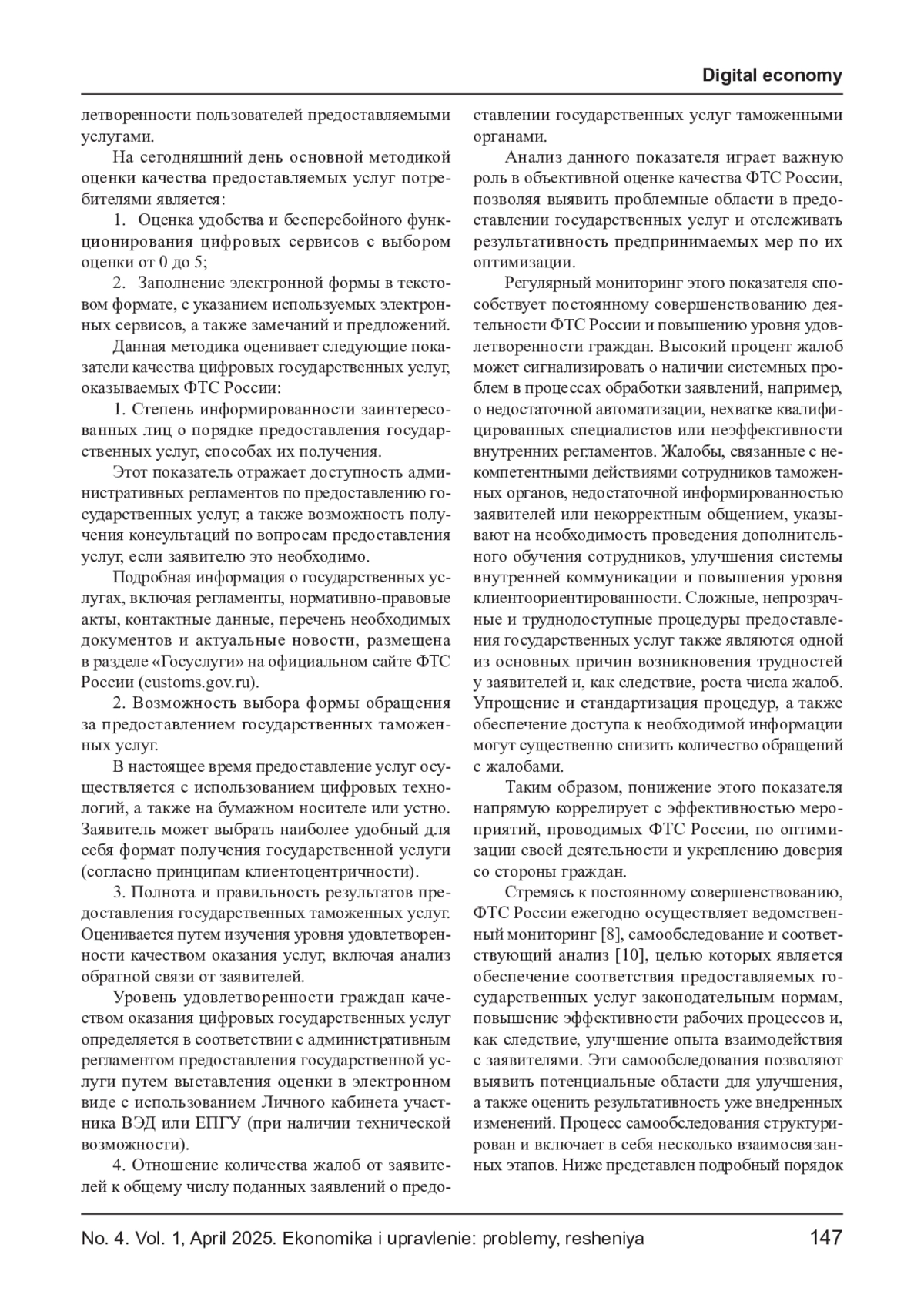 2. Бынкина А. В., Глаголева А. А. Управление качеством таможенных услуг: проблемы и перспективы развития // Экономика и бизнес: теория и практика. - 2022. - № 10-1. EDN: IXFKKE