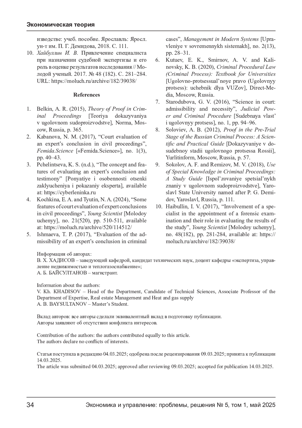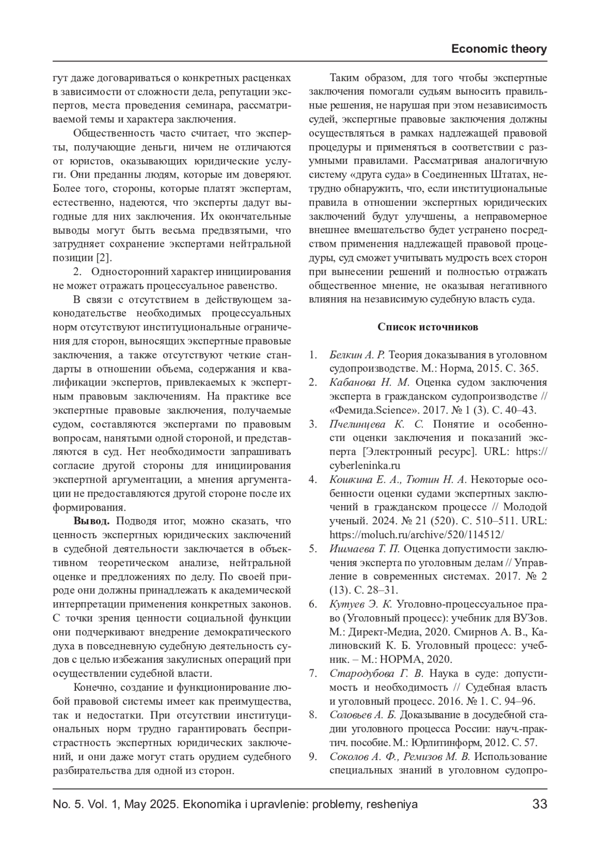5. Ишмаева Т. П. Оценка допустимости заключения эксперта по уголовным делам // Управление в современных системах. 2017. № 2 (13). С. 28-31. EDN: YSYXFZ