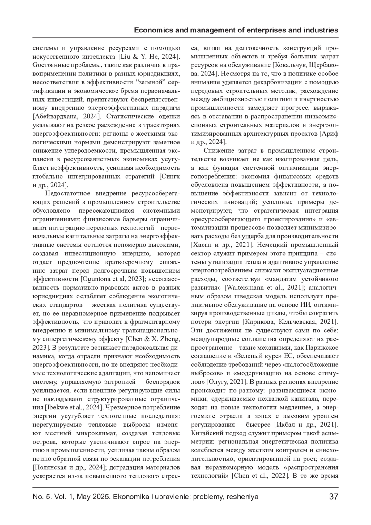 2. Акрам Н., Хак М., Халил А., Заман Л., Фахад М., Асгар Ф. Проливая свет на финансовую устойчивость: Анализ экономических последствий энергоэффективного освещения в строительной отрасли // Азиатский бюллетень по управлению большими данными. - 2024. -. DOI: 10.62019/abbdm.v4i02.141