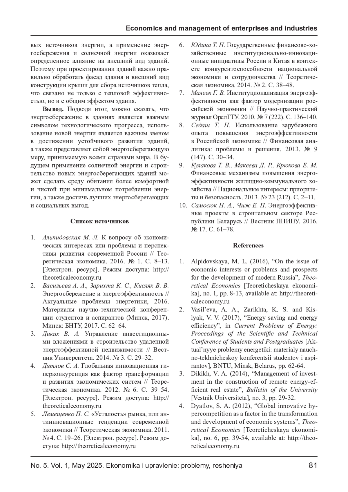7. Малеев Г. В. Институционализация энергоэффективности как фактор модернизации российской экономики // Научно-практический журнал ОрелГТУ. 2010. № 7 (222). С. 136-140.
