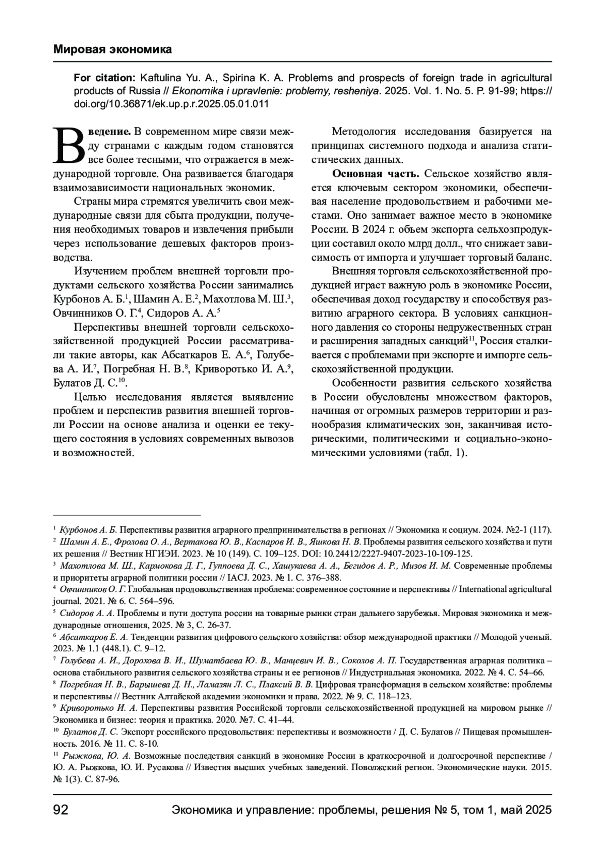 6. Курбонов А. Б. Перспективы развития аграрного предпринимательства в региона // Экономика и социум. 2024. №2-1 (117). С. 45.